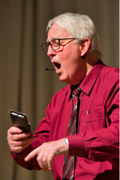 beschrieb er die heutige Allgegenwart des Handys, seine Möglichkeiten bis zum Musikhören, seinen