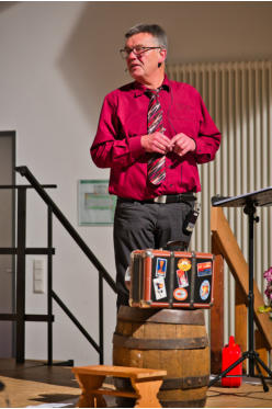 Cajon. Die Begeisterung im Saal war so stark, dass Peter Schad alle zum Mitsingen der Halleluja-